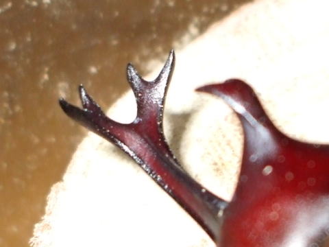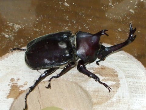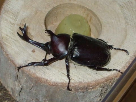 エサ皿に、しっかり爪をかけているカブトムシを観察して