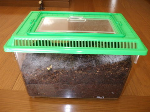 飼育ケースで飼育します。成虫の場合は、マットなどを